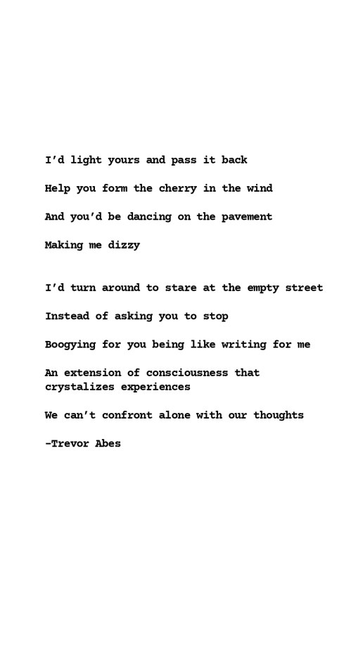A taste from “Smoking Between Cars in Front of Our Building” off of my book of poetry, The Breakup Suite.